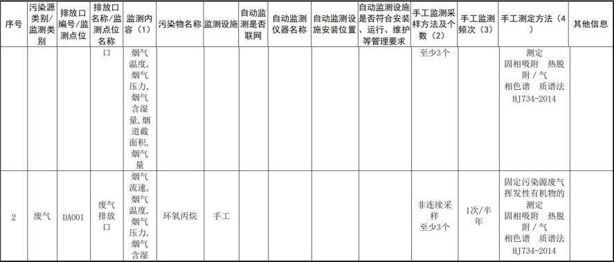 三、企業自行監測開展情況說明我公司自行監測手段采用手工監測+自動監測相結合,開展自動監測的項目有廢氣中的甲烷、非甲烷總烴及 VOC,其他未開展自動監測的項目采用手工監測。 我公司手工監測委托第三方檢測機構進行監測,監測內容包括有組織廢氣和無組織廢氣。